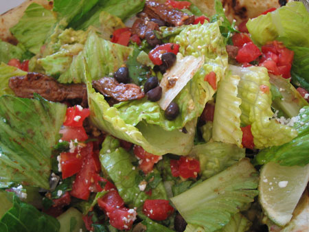 I just get a grilled steak or grilled chicken salad, have them put no rice in it, get black beans (pinto beans are a no-no in phase 1), have them hold the chips, double up the pico salsa, and then I just don’t eat the tortilla. To be honest, the tortilla always gets soaked by the black beans and I don’t love the rice, so I’m really not eating much different than I usually do at Rio. Seriously– doubling the salsa negates the need for any dressing at all. It’s awesome (and delicious…)