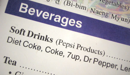 It was amusing simply because the menu says “(pepsi products)”, but then has listed under your choice of drinks “Coke” and “Diet Coke”, heh.