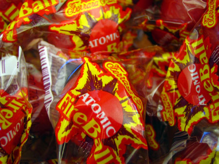 So today I filled the candy dish at work with Atomic Fireballs. So far not a big hit (I’m not complaining– that’s just longer until I have to refill the thing 😉 )